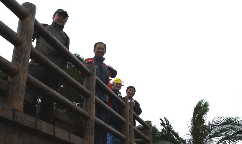 由於依然下著毛雨,登山遊客劇減,成就我們可以縱情走山,沿途恣意高聲喧嘩。會長、茂甫、阿飛不愧為資深走山會員,一路上直嚷著要挑戰高難度路徑。鼠哥伉儷也非省油之燈,無論天涯海角,奉陪到底。可憐的駱哥,正在復健中,一步一腳印,最終也隨隊走完全程。